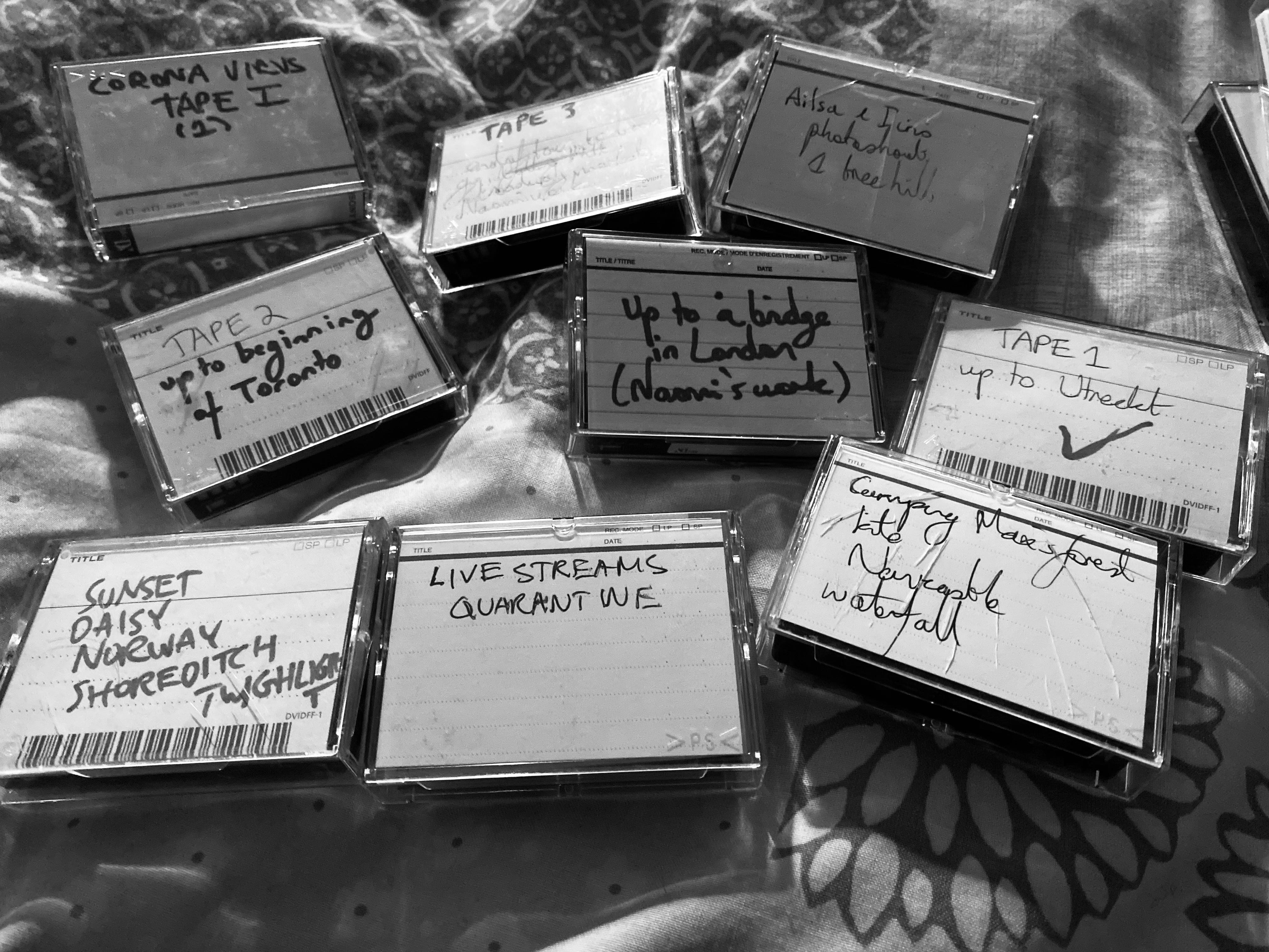 NPR Tiny Desk is on these tapes, as well as filming Brave Face in Norway. That was about a month before the pandemic. I filmed a walk to Canary Wharf when Covid first hit, zooming in on all the signs on the front of businesses, “closed without further notice”. To pass the time, me and my housemates also used infrared mode on the camera to create a horror film.
